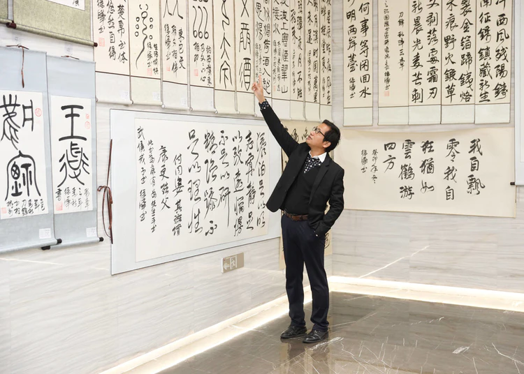 而这种跨界融合的思维,反过来又成就了其书法展览“全书体+古老文字”的全国首创,形成了艺术与商业相互滋养、彼此成就的良性循环。