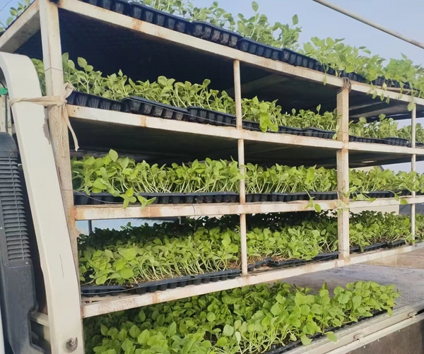 目前,基地已培育辣椒约60万株、西红柿45万株、茄子18万株、白莲花14万株、甜瓜21万株,全年出货量的40%集中在当前销售期,平均每天数万株菜苗从大棚走向大田,全力保障春耕生产用苗需求。